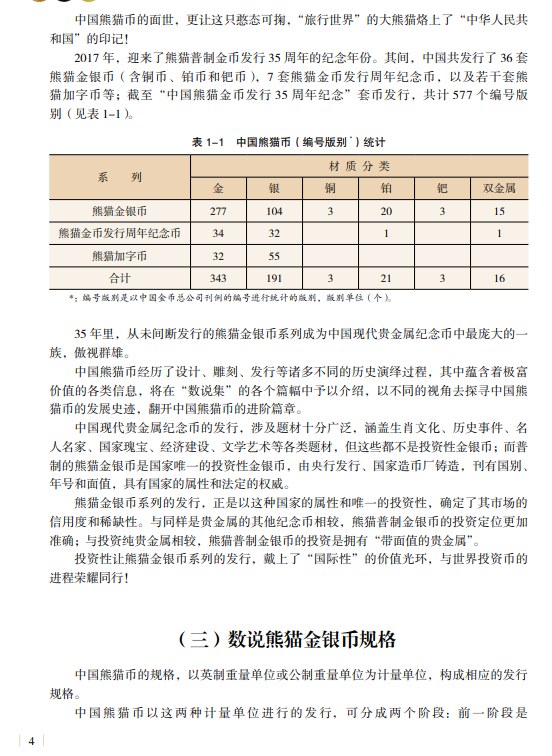 全書以圖說文、圖文并茂,增加了圖書的閱讀性和趣味性,使廣大讀者對我國熊貓金銀幣有一個全面的了解。對發展我國金銀幣文化,開拓熊貓金幣市場具有積極推動作用,可供廣大金銀幣愛好者和藝術品收藏者閱讀參考。