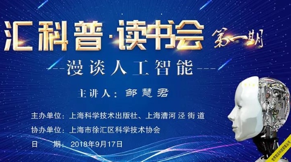 2018年第一期“匯科普讀書會”也拉開序幕,應著人工智能大會的召開,本次讀書會以“人工智能“為主題,在徐匯漕河涇街道舉辦。