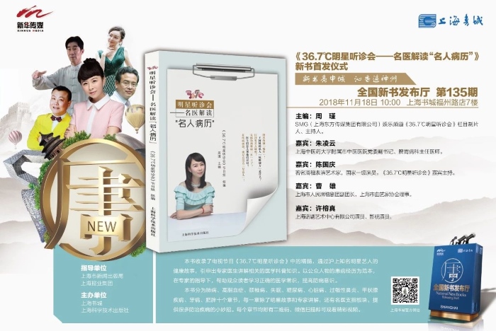 《36.7℃明星聽診會》是一檔在滬上家喻戶曉的醫學科普類電視欄目,從2008年起在上海娛樂頻道晚間黃金檔播出,迄今已11年,2018年將節目精華匯集成書,通過滬上知名明星藝人的健康故事,引申出專家醫生講解相關的醫學科普知識。以公眾人物的患病經歷為范本,在專家的指導下,幫助觀眾讀者學習正確的醫學常識,提高防病意識,從而輕松易懂地掌握正確的醫學知識,達到普及健康生活理念的目的。