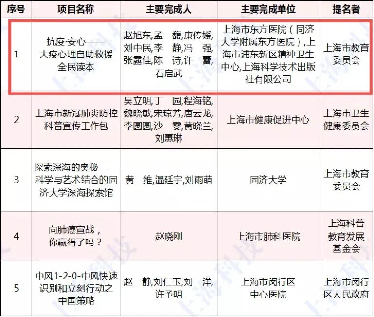 我社《抗疫·安心——大疫心理自助救援全民讀本》獲2020年度上海市科學技術(shù)獎勵大會科學普及獎二等獎!